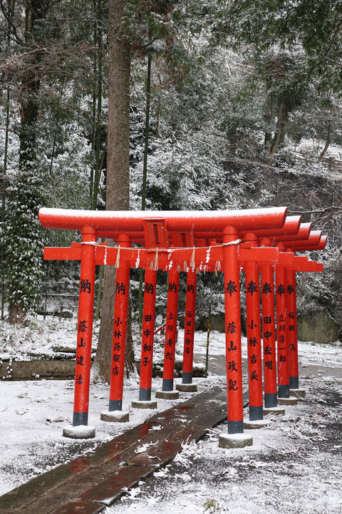 この社は、旧諫早家邸宅内、現在の諫早高校の脇にある広場の一角に鎮座していたもので、諫早家の庭内神として、宝暦四年(一七五四)第八代藩主・茂行公(しげつらこう)が、京都・伏見稲荷大社より御分霊を勧請して祀ったものである。現在の地には、諫早大水害の後、高城神社とともに遷座されてきたものである。
